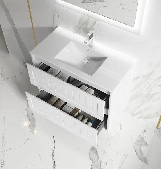 600-900mm Hampton Shaker Style Bathroom Vanity Satin White OR Satin Black