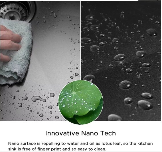 - Nano-coated kitchen sinks have several features that greatly benefit kitchens that are regularly under heavy workload. The nanoscale thick film perfectly complements the 304 stainless steel construction of these sinks since it enhances their anti-scratch properties.