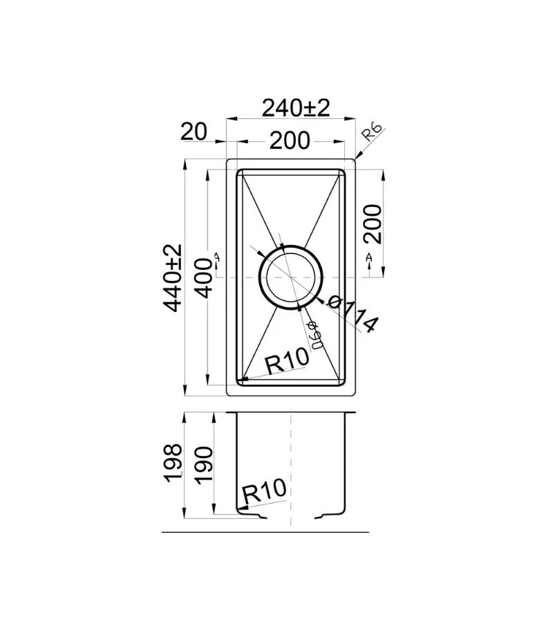 Eden 200 x 400mm Single Bowl Above-Undermount Sink-R10 Corner