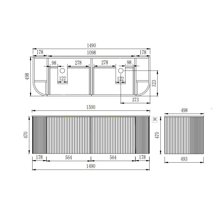 Linear VI 1500-1800mm Curve Wall Hung Vanity