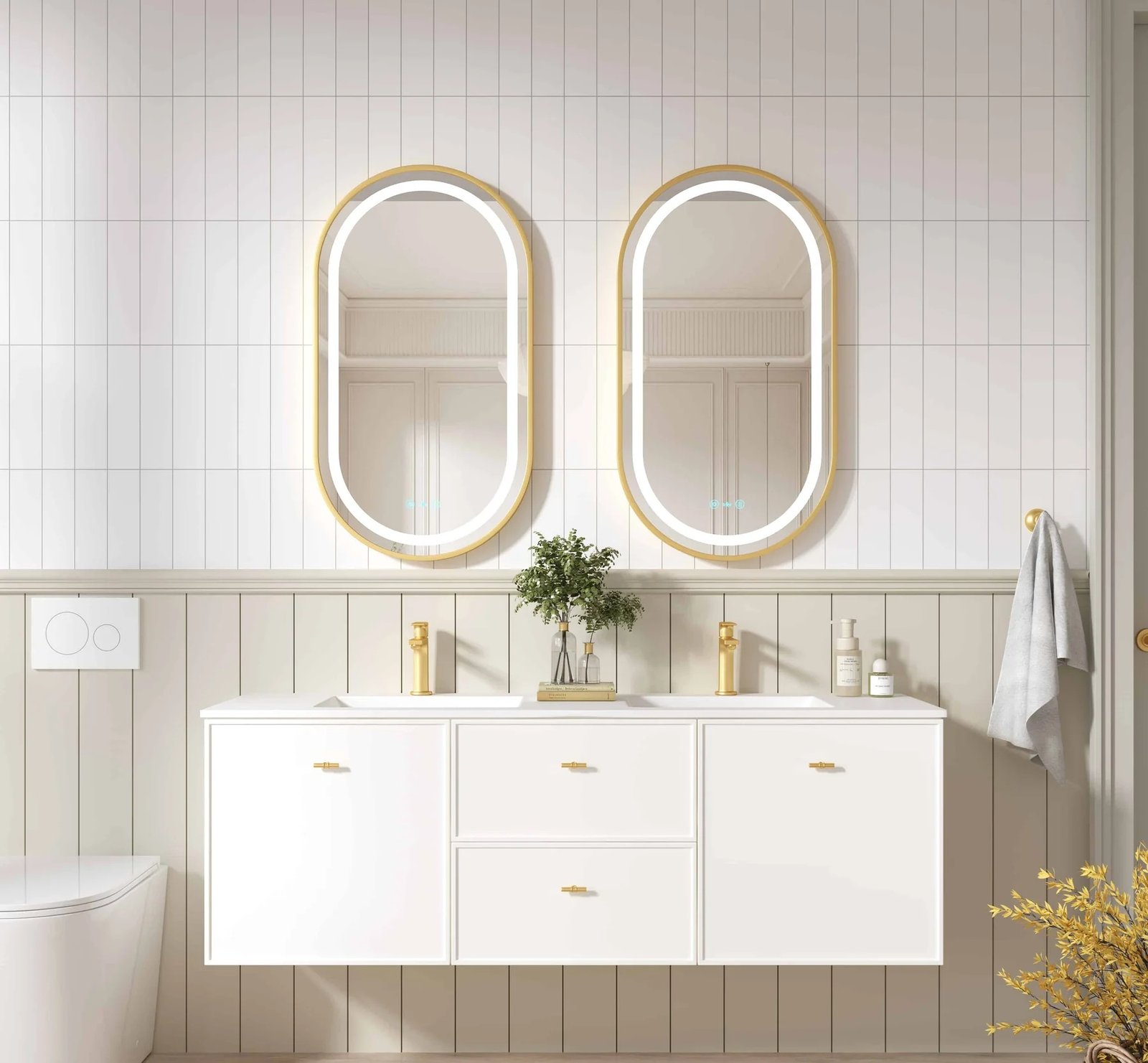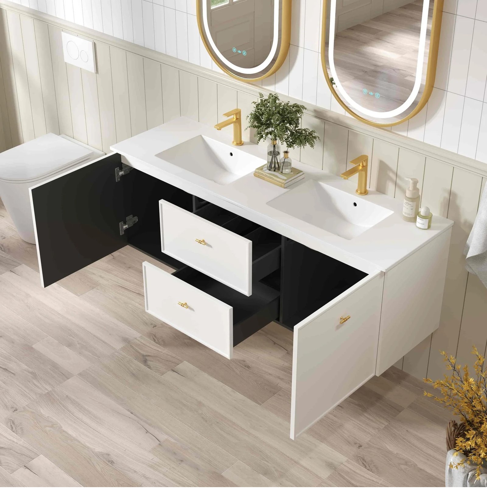 • Dual Handle Options - Available with matte white round knobs or brushed gold T-bar handles—designed to suit various interior styles with both function and flair