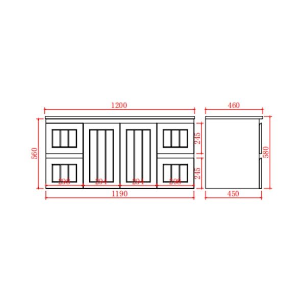 | Cabinet Size Dimension | 1190mm W X 455mm D x 480mmH |