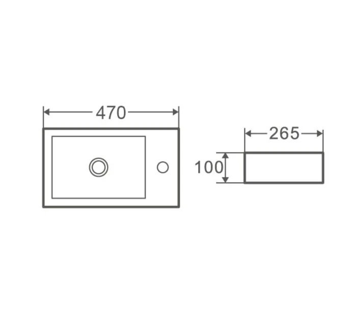 Wall-hung rectangular basin with mixer hole (450×260)